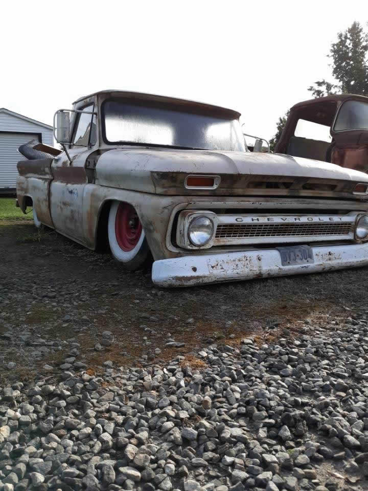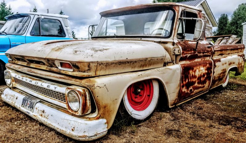 So we don’t have a name for this truck just yet, but this truck came to us from Texas with the actual original title issued from 1965! This truck most likely has the best patina of any of the trucks we are currently building.. We are going all out on this one. Full painted frame, air bagged chassis with Accuair components, either Mobsteel or Coy’s smoothies, 450 HP Ly6 6.0 LS swap with auto trans, shortbed fleetside truck, big back window conversion, all new interior with Vintage Air AC, new raised bed frame with new re purposed old lumbar, new fuel system, new wiring, new brakes, basically everything on this truck will be gone through and upgraded once it’s all said and done.