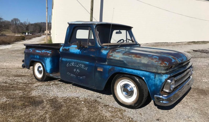 This 66 is a perfect modern-day cruiser hiding under original looking sheet metal and Patina. This truck is sporting a paint job from good ole mother nature, unique to this 66 step side short bed. The original character of the truck is retained; however everything underneath has been upgraded with modern components to make it a resto mod cruiser with power, reliability, and something you can just get in and turn the key and Drive. The 6 original 6 cylinder has been replaced with a 5.3 Vortec truck motor backed by a modern 4l60 automatic overdrive transmission. The truck all new chrome headers and dual exhaust so the neighbors know you are home. A new radiator keeps him cool on summer days and a new brake booster, master cylinder, and proportioning valve makes him stop on a dime.